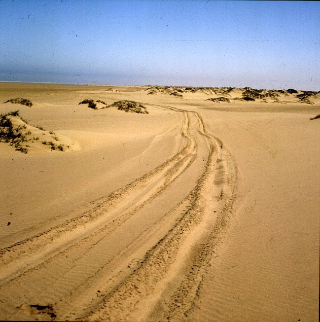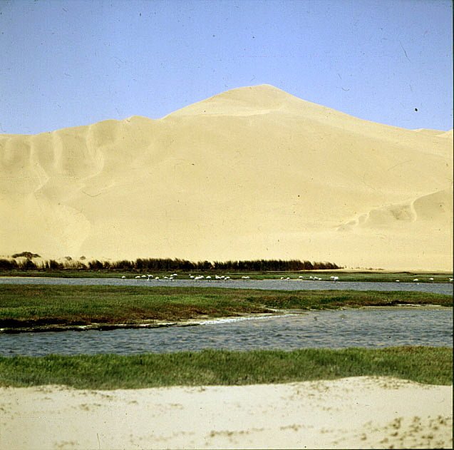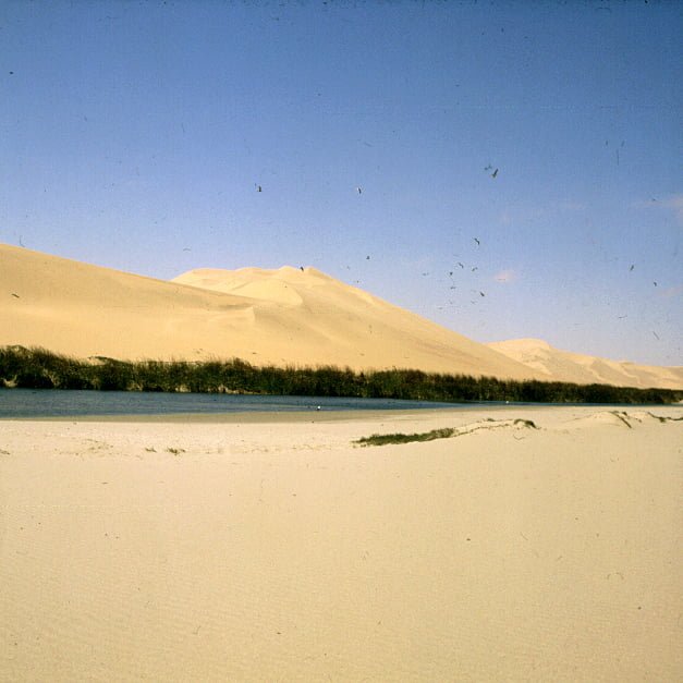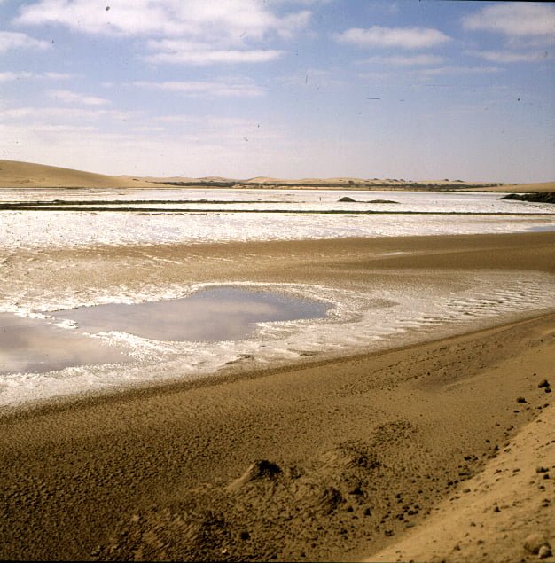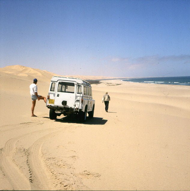 Svakopmund runsdete den nördlich Teil unserer Reise 1987 ab, der Wagen erhielt eine kleine Inspektion und wir fuhren mit Jeep zum Sandwichharbor – einem Küstenabschnitt mit Lagune und 300m hohen Sandünen sowie kleinen Granatsteinen am Strand.Unser Hotel lag direkt am Strand und hatte tolle Aussicht auf den alten Schiffsanlegesteg.